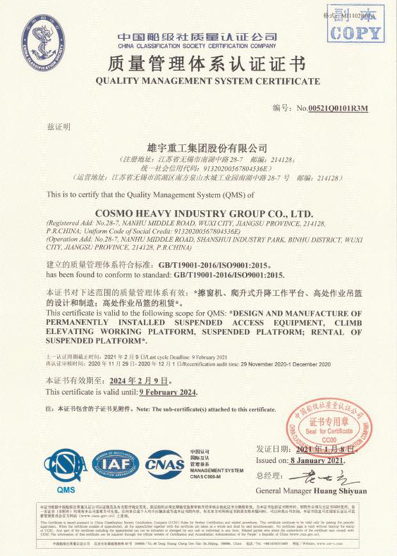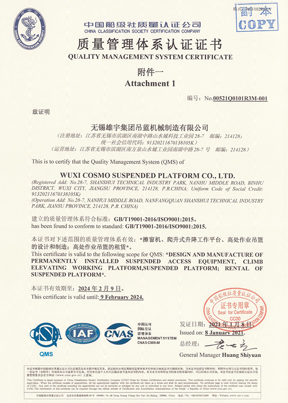 Copyright ? 2021 Wuxi COSMO Suspended Platform Co.,Ltd. All Rights Reserved.