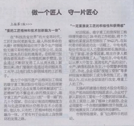 ,集團辦公室發(fā)文,要求各分子公司、各部門、各辦事處要認真貫徹學習這次大會精神和謝總在大會上的講話,以楊錫初同志為榜樣,在各自的崗位上發(fā)揚“工匠精神”,為實現雄宇“樹國際品牌、立行業(yè)標桿、做百年企業(yè)”的偉大愿景而努力奮斗!
