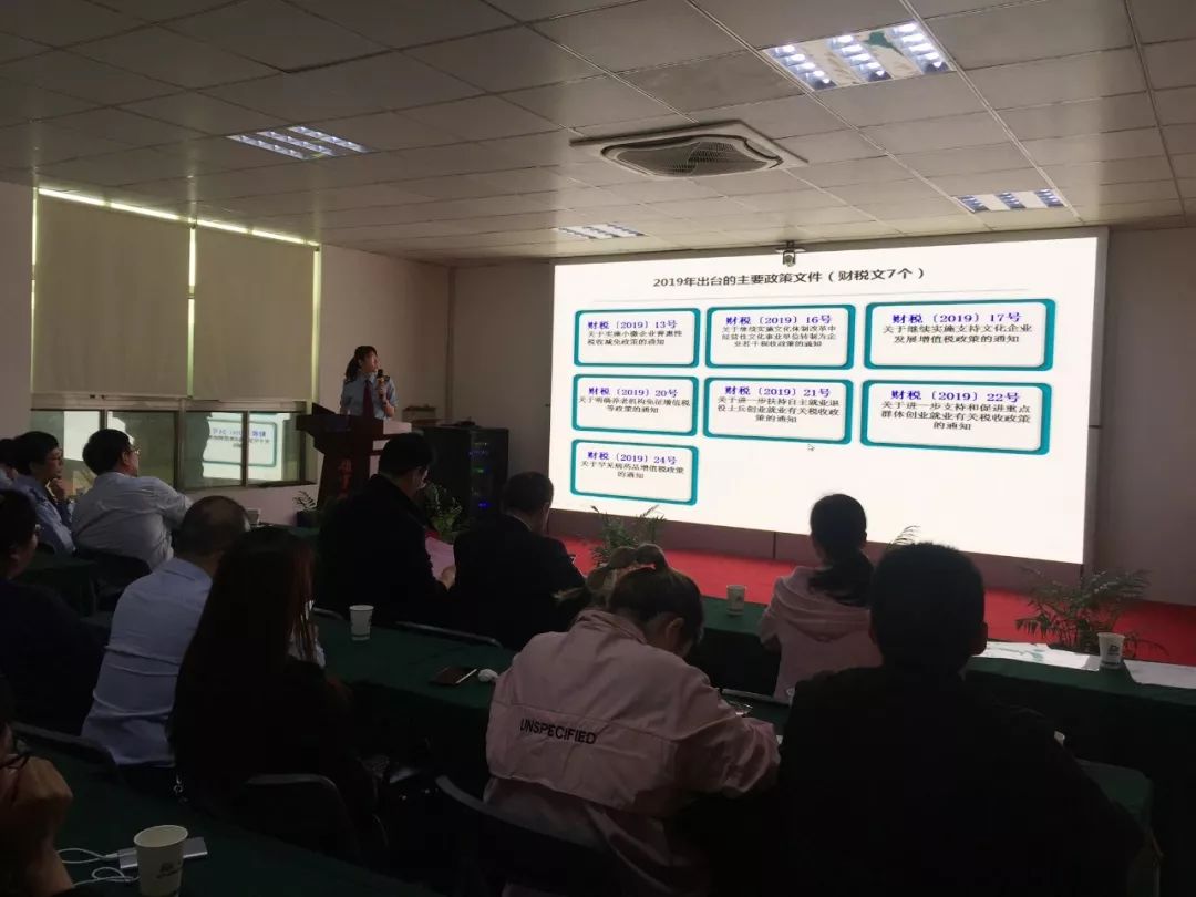 講座正式開始后,先是由于研昊副股長給大家具體講解了的減稅降費政策。她圍繞著新稅制推行后,企業(yè)納稅面臨的難點問題作了深入淺出,通俗易懂、圖文并茂的講解,使大家受益匪淺。
