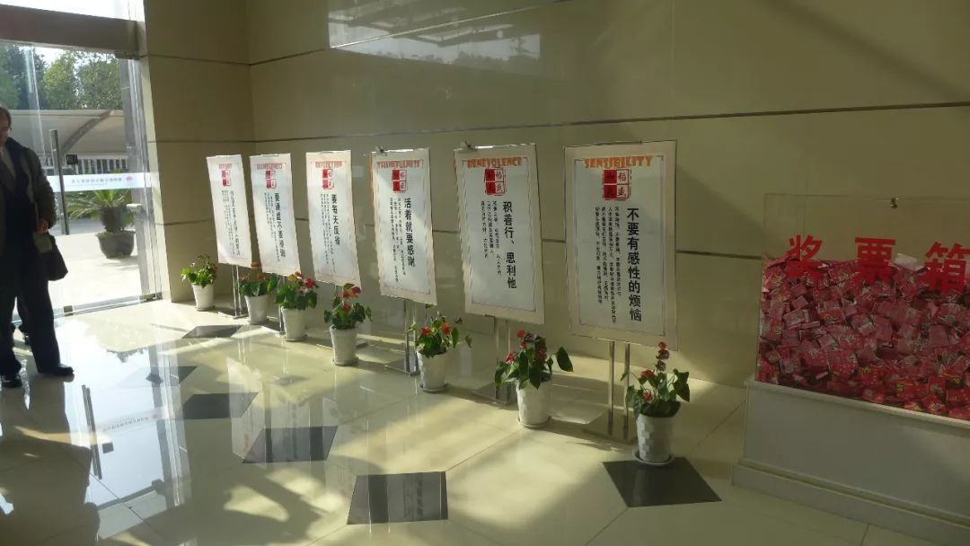 下午1點,雄宇參訪團到達新日公司。新日公司劉總帶領(lǐng)高層管理人員早已在門口等候。一樓大廳中央的電子屏幕上滾動著“熱烈歡迎無錫雄宇集團來賓蒞臨指導”的字幕。大廳左側(cè)排放著寫有“六項精進”內(nèi)容的宣傳牌,右側(cè)有幾盆蓓蕾初放的鮮花。大廳里一塵不染,窗明幾亮。在熱烈的掌聲中,劉總帶領(lǐng)大家來到了三樓電教室。