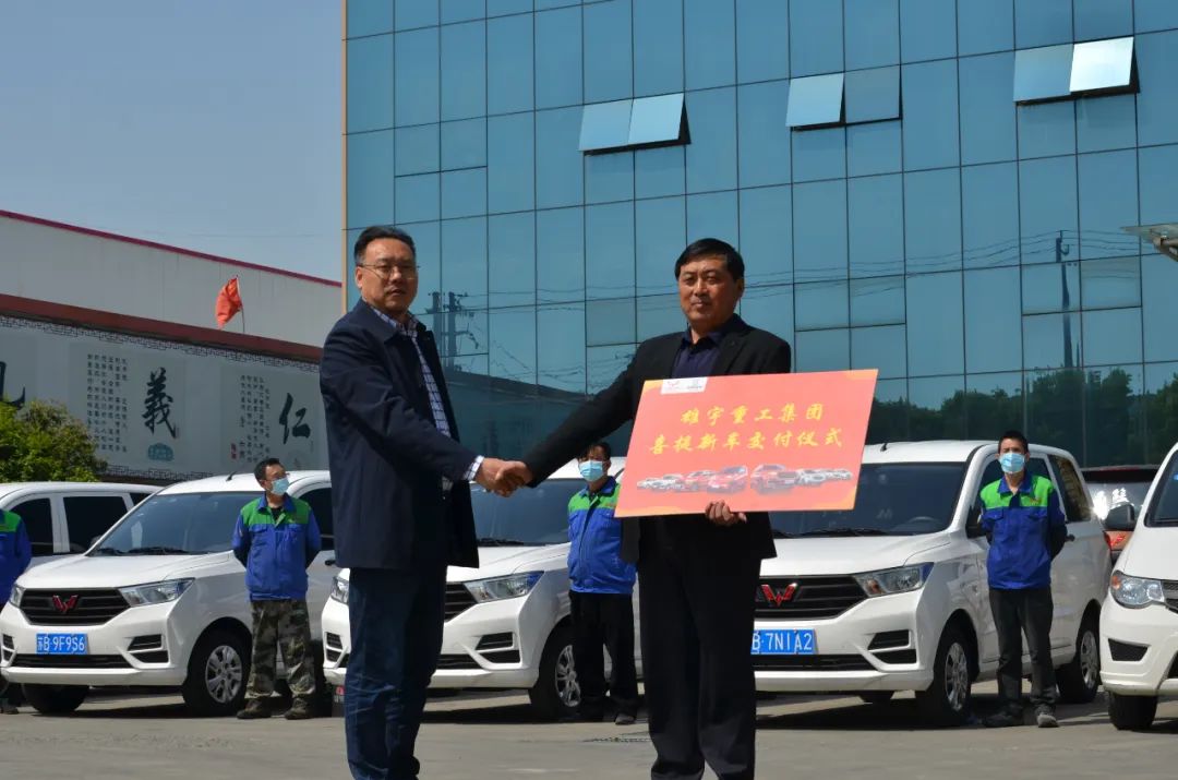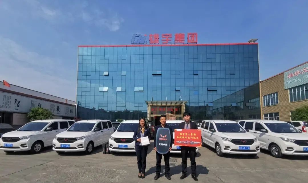 2020年4月23日,陽光明媚,天高云淡,10輛五菱宏光S款汽車在雄宇廣場上一字?jǐn)[開,在陽光的照射下熠熠生輝。上午九時整,集團(tuán)總裁謝家學(xué)向無錫租賃分公司總經(jīng)理鄭文龍交付了新增車輛。