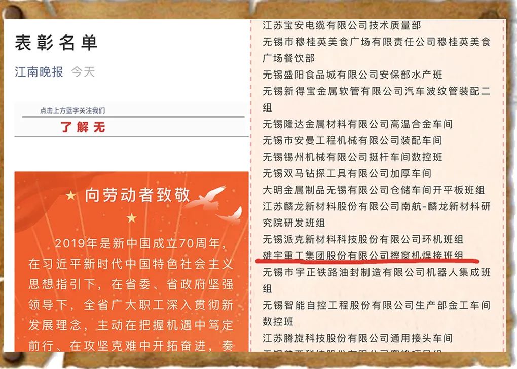 當前位置:首頁 - 新聞中心 - 企業(yè)動態(tài) - 熱烈祝賀雄宇集團再次榮獲“江蘇省工人先鋒號”