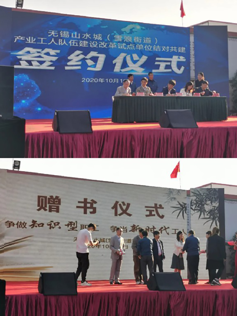 隨后,山水城五家工人隊(duì)伍建設(shè)改革試點(diǎn)企業(yè)簽署了結(jié)對(duì)協(xié)議,山水城(雪浪街道)總工會(huì)向五家企業(yè)贈(zèng)送了部分書籍。